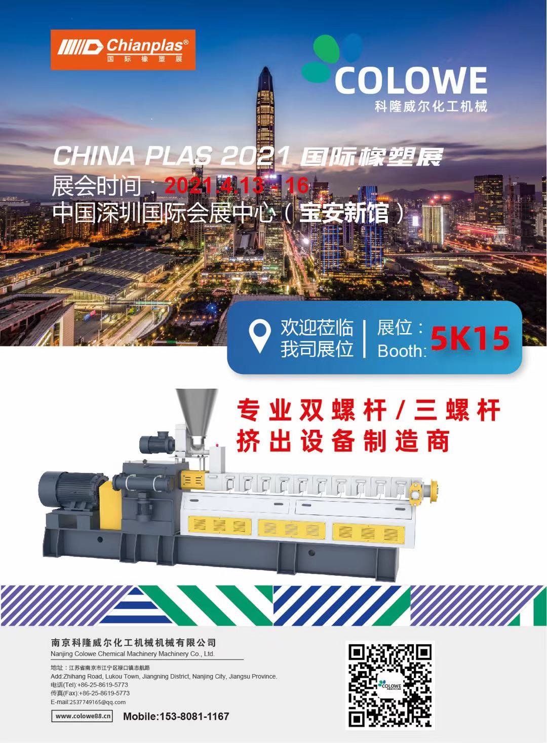 南京科隆威爾化工機(jī)械有限公司,塑料擠出生產(chǎn)線定制廠家!此次,科隆威爾隆重邀請您參加此次 CHINAPLAS 2021 國際橡塑展!愿我們共同學(xué)習(xí),進(jìn)步,成長!努力營造出一個更加美麗的世界!愿我們攜手共創(chuàng)未來!